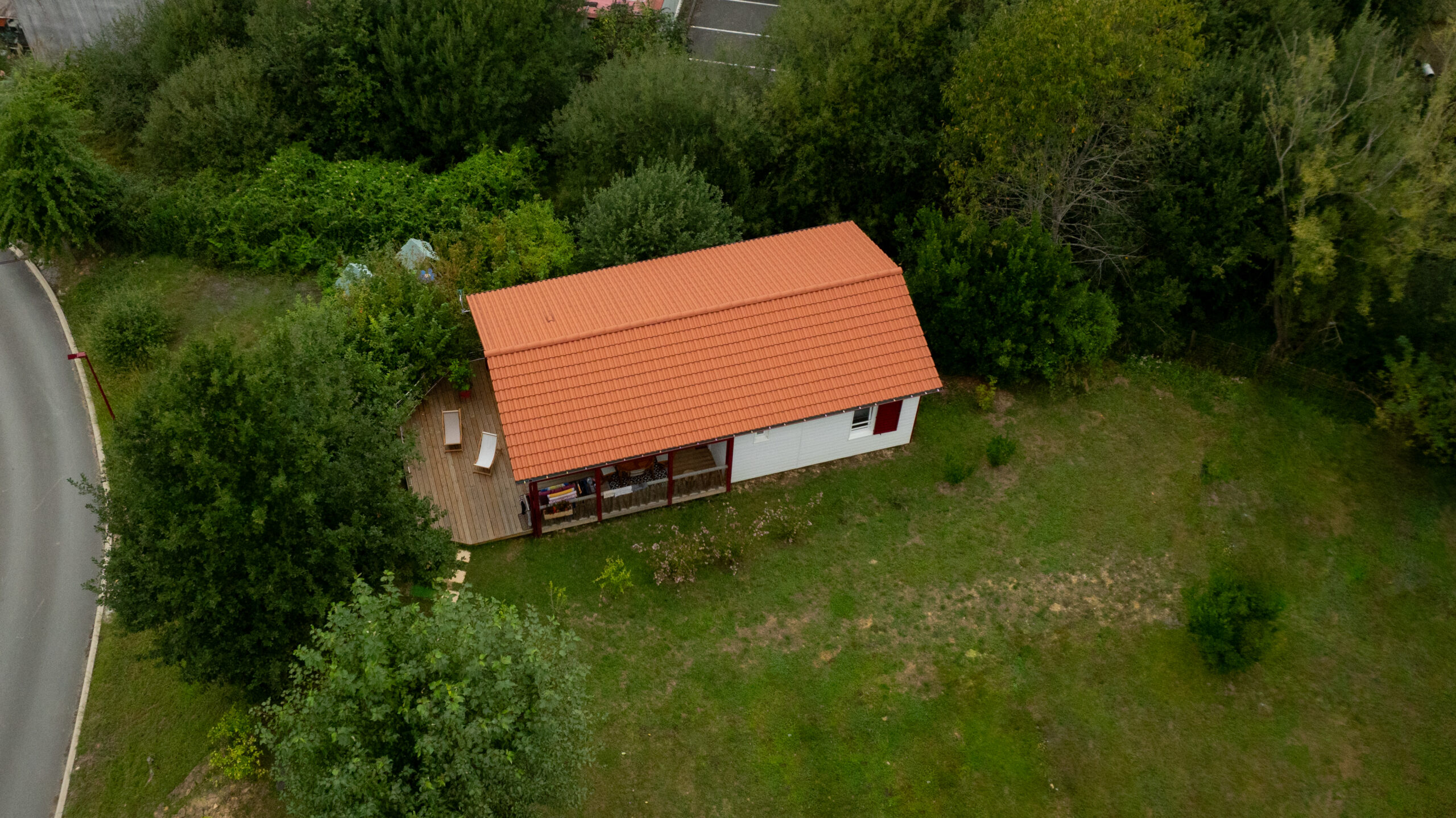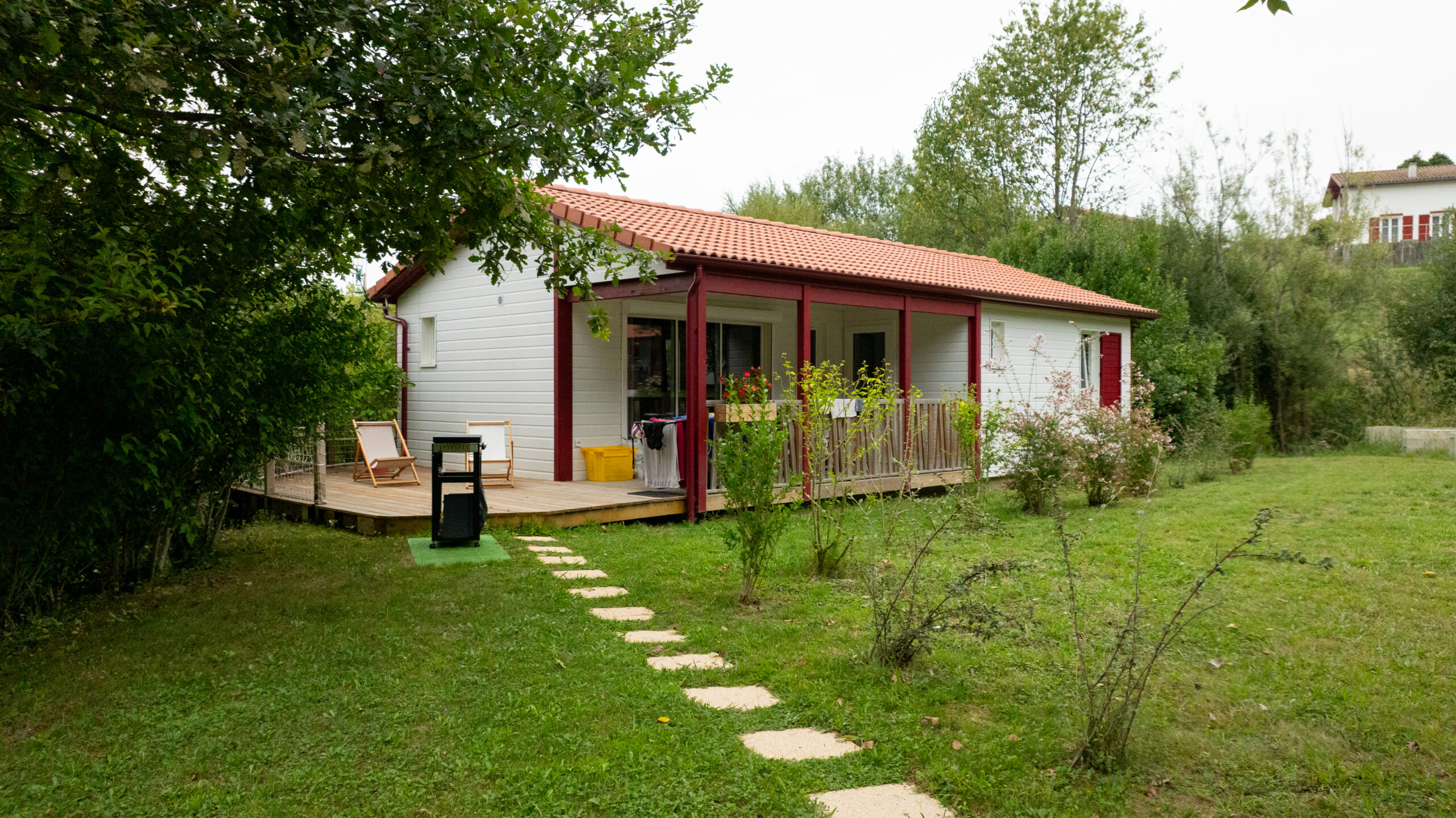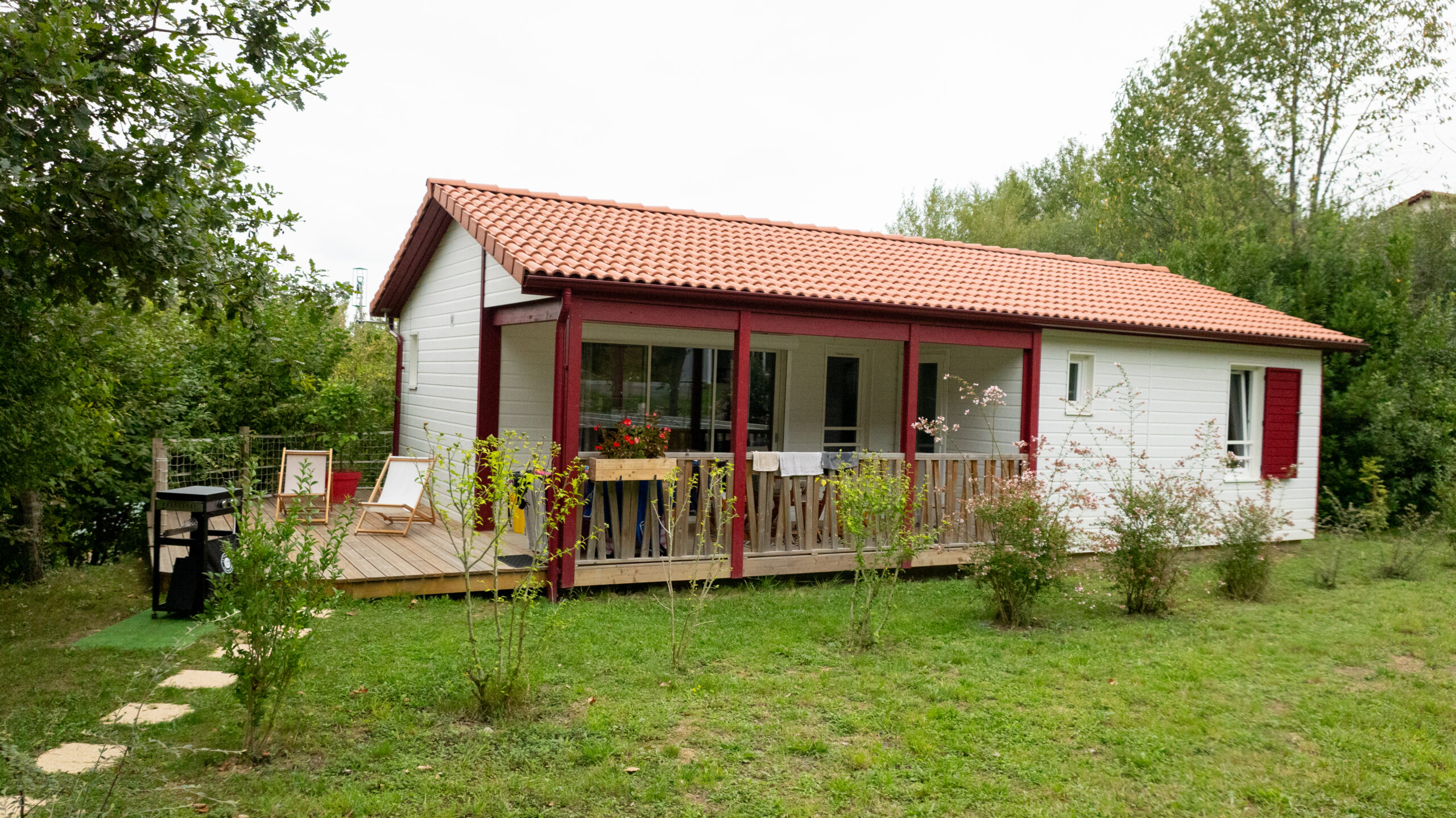Un grande terrasse avec bains de soleil et plancha